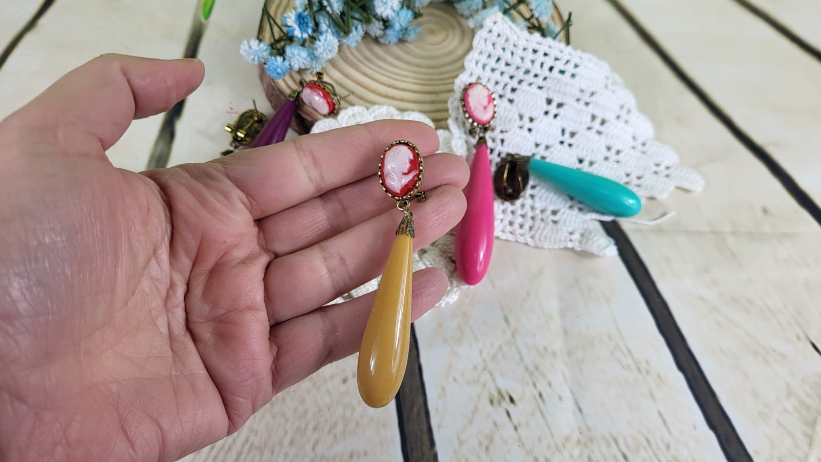 Pendientes de flamenca calabaza. El autentico pendiente de calabaza español por su color y forma su estructura es dorada de 7,5 cm de largos y cierre a presión para que no los pierdas mientras bailas. Estos pendientes podrás usarlos para flamenca o huertana.