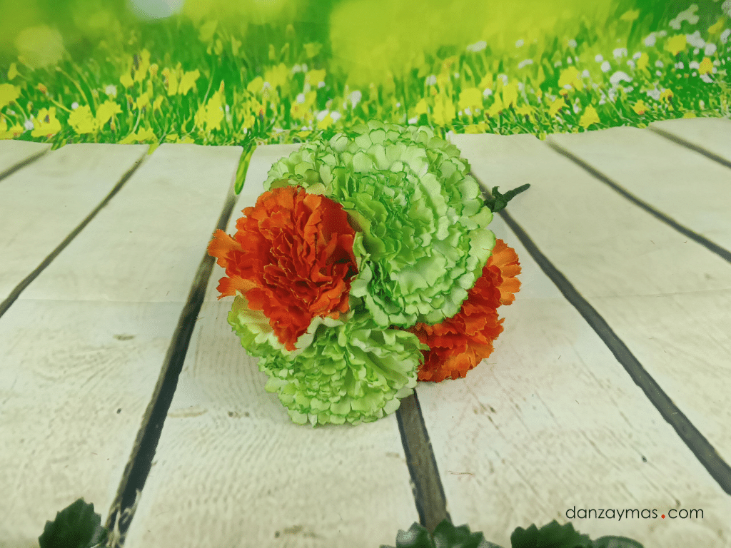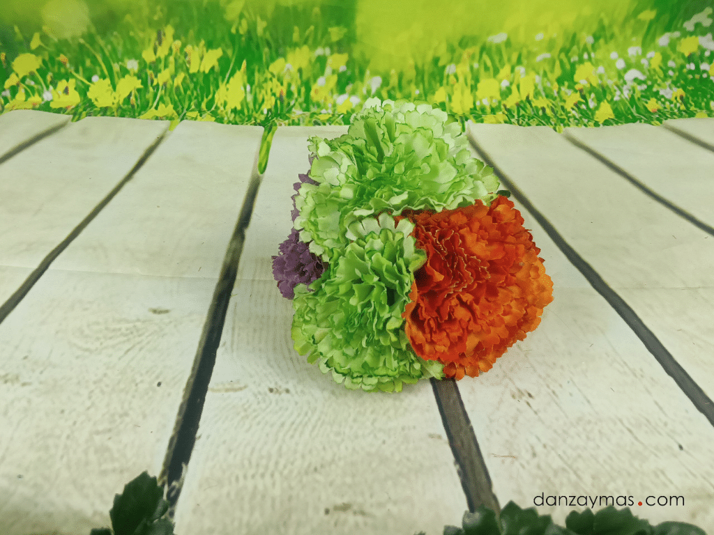 El grupo de claveles hace un pomo grande pero no creas que es muy grandote ya que los claveles son tamaño natural. Quedara discreto y colorido en tu cabeza.