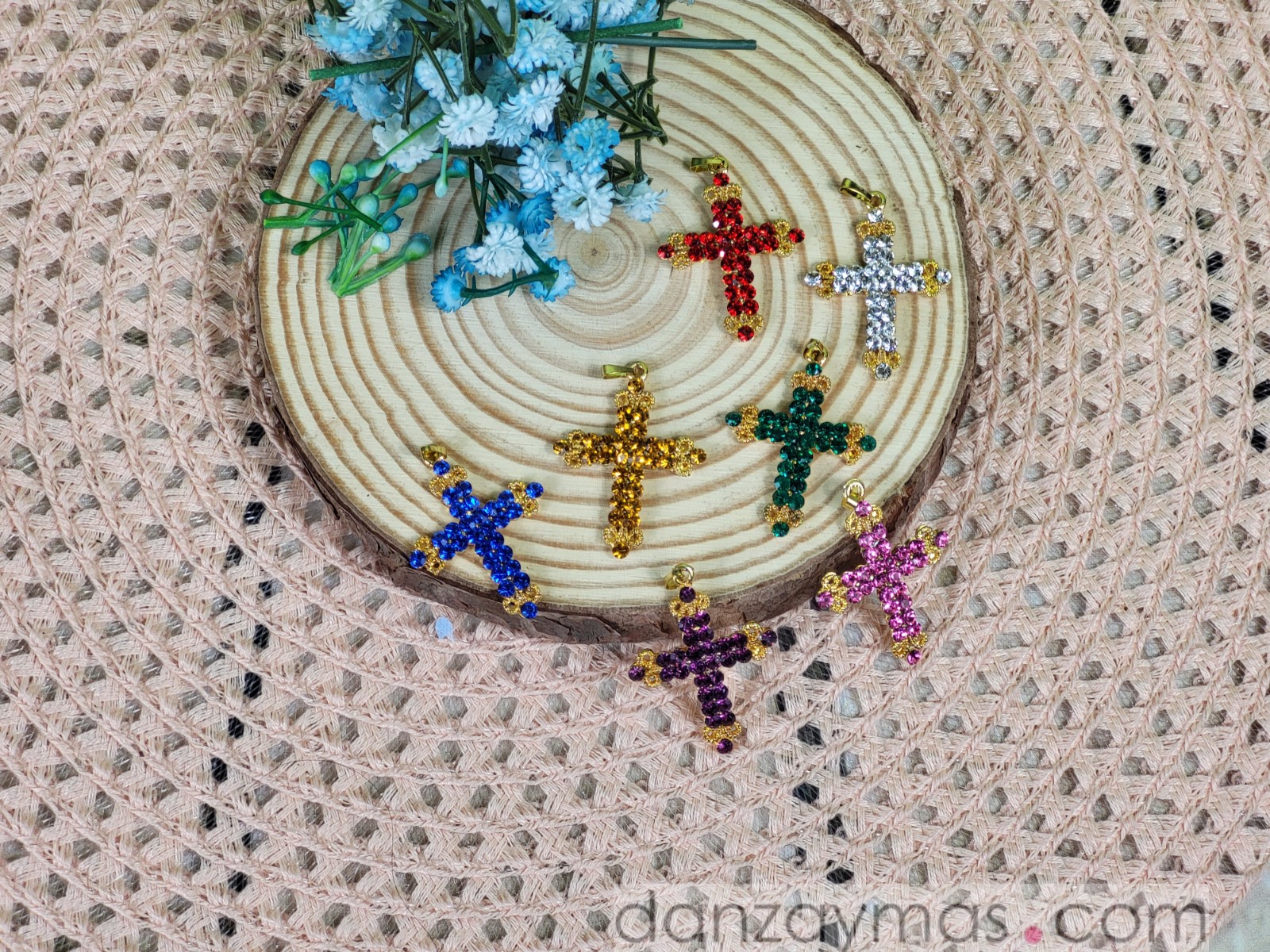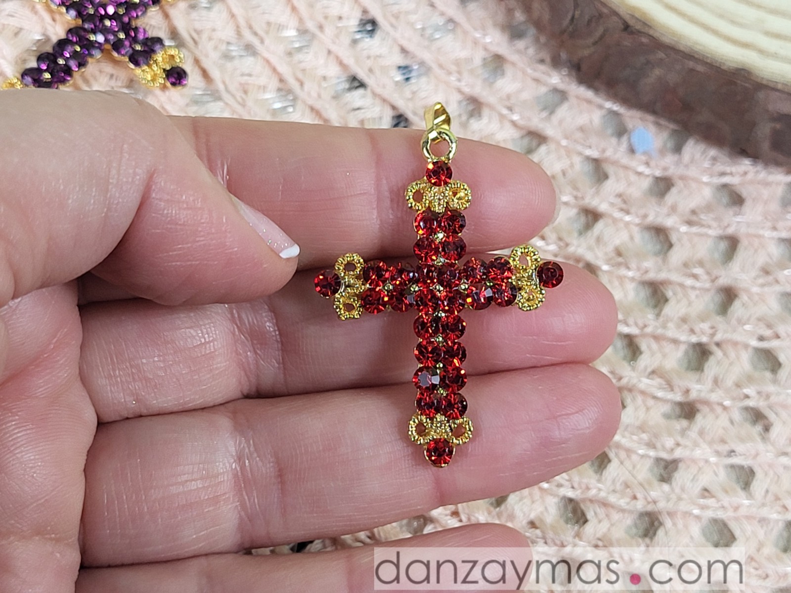 Cruz de huertana para adulta con bonitos motivos y piedras brillantes a color.
