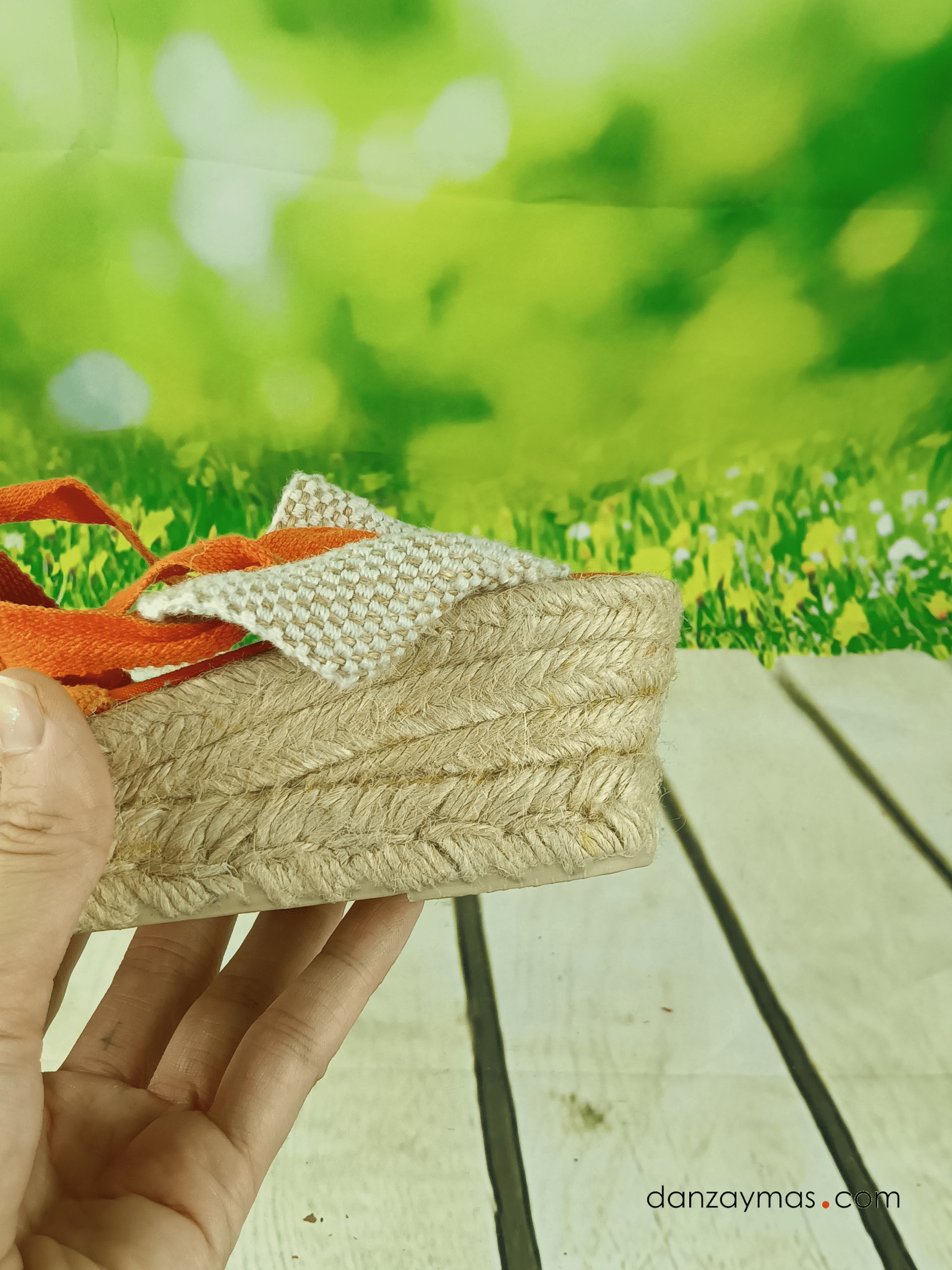 Esparteña cuña colores 3 cuerdas. Quieres llevar algo diferente para tu traje regional? Este tipo de esparteña es muy común con tu ropa de calle pero estos últimos años ha sido muy demandada para los trajes regionales ya que el zagalejo se ha puesto muy de moda y la verdad que el colorido le viene muy bien.